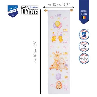 Telpakket met telpatroon, Borduurstof: 100% katoen, Garen: 100% katoen DMC, Aida 5,4 steken/cm, Garenkaartje, Werkwijze in 8 talen, Vergroot telpatroon, Naald, Foto, Met alfabet, ca. 18 x 70 cm / 7.2" x 28", Leeftijdscategorie: vanaf 18 jaar, Steken: kruissteek, Spansteek, Stiksteek, Aantal kleuren: 31, Moeilijkheidsgraad: Gemakkelijk