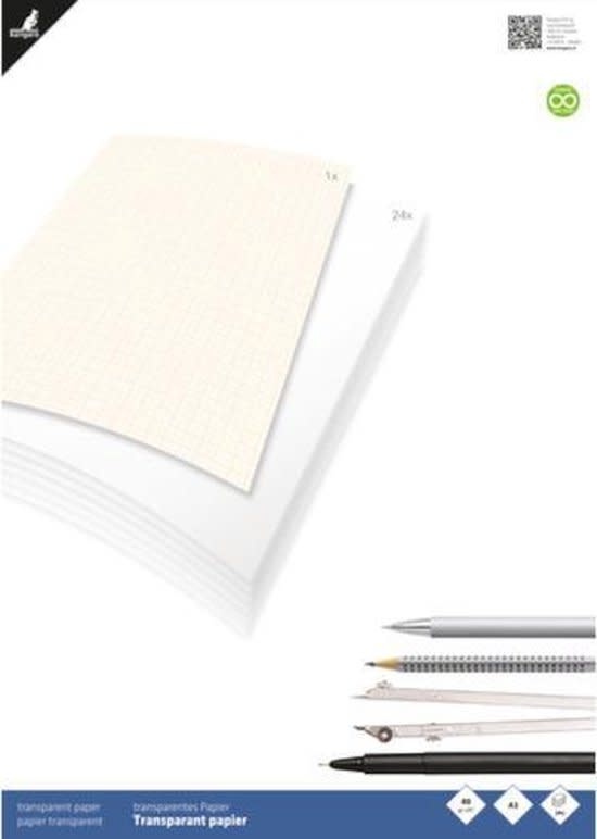 Inhoud 24 vellen 80 grams transparant papier + 1 vel millimeterpapier.