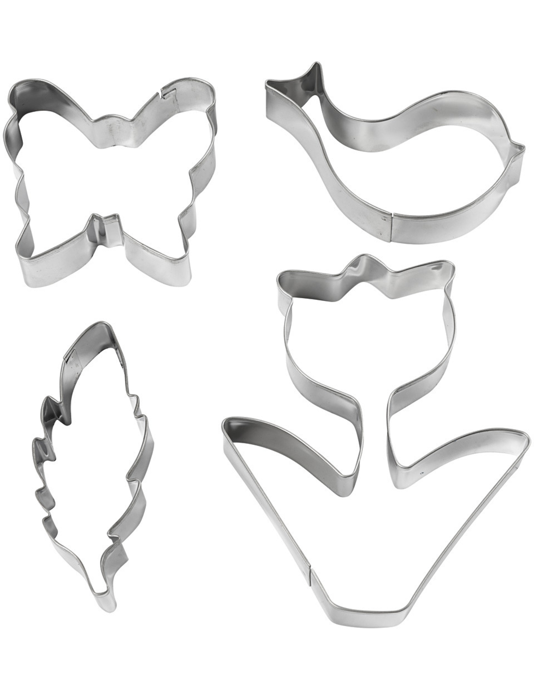 Traditionele metalen uitsteekvormen voor koekjesdeeg, klei etc. Set met 4 verschillende motieven
