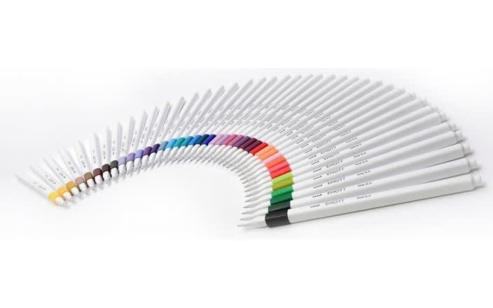5 Uni Emott fineliners in passionele kleuren. De Uni Emott is een schrijf- en tekenstift die verkrijgbaar is in 40 kleuren. Deze fineliner heeft een fijne punt van 0.4 mm. Geschikt om mee te schrijven, tekenen en lijnen trekken. De zeer sterke punt trekt niet krom, splijt niet en geeft altijd strakke, regelmatige lijnen. De inkt is op pigment- en waterbasis en drukt niet door het papier. Vervaagt niet. Ook loopt de inkt niet uit en vlekt niet.