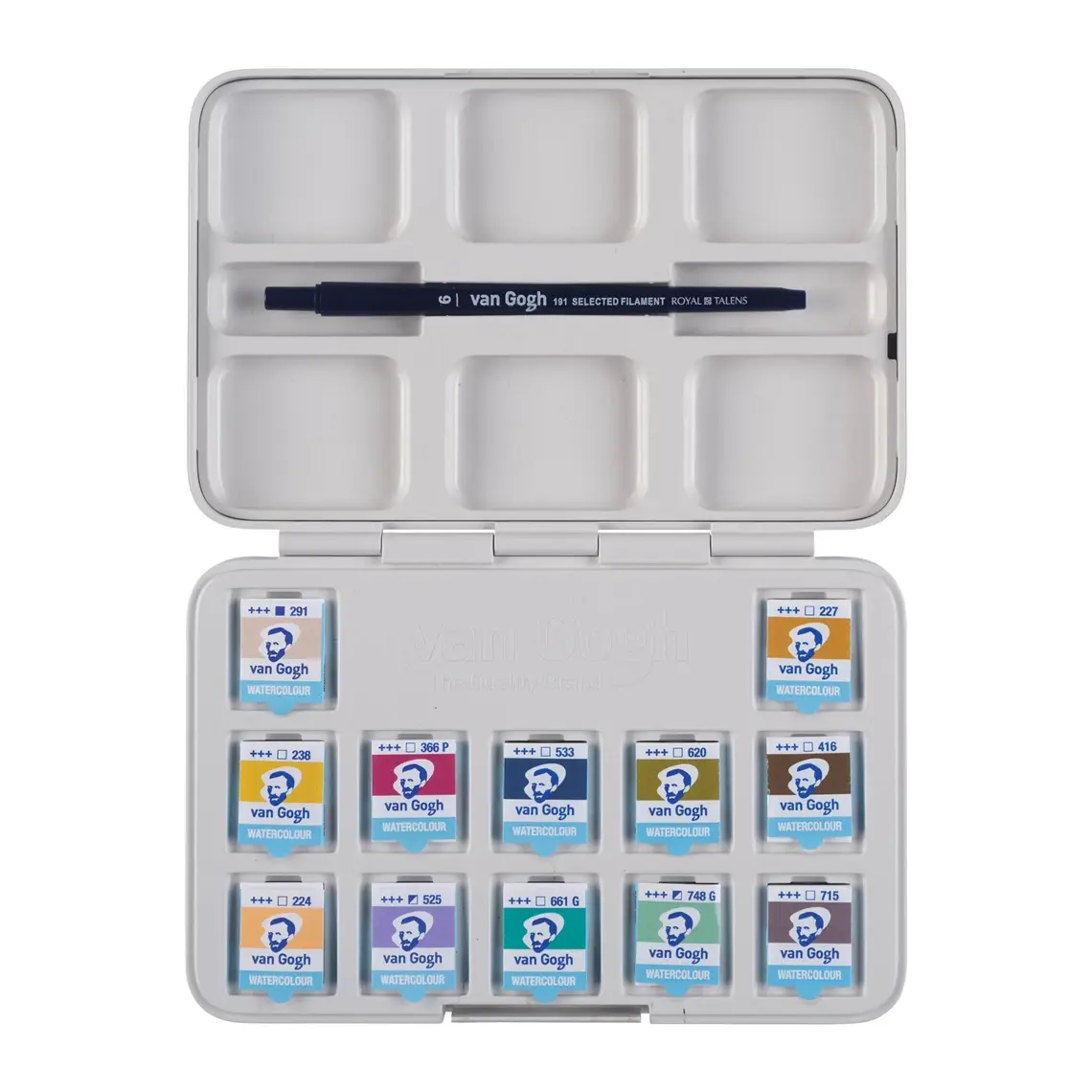 Van Gogh Aquarelverf pocket box gedempte tinten met 12 kleuren in halve napjes