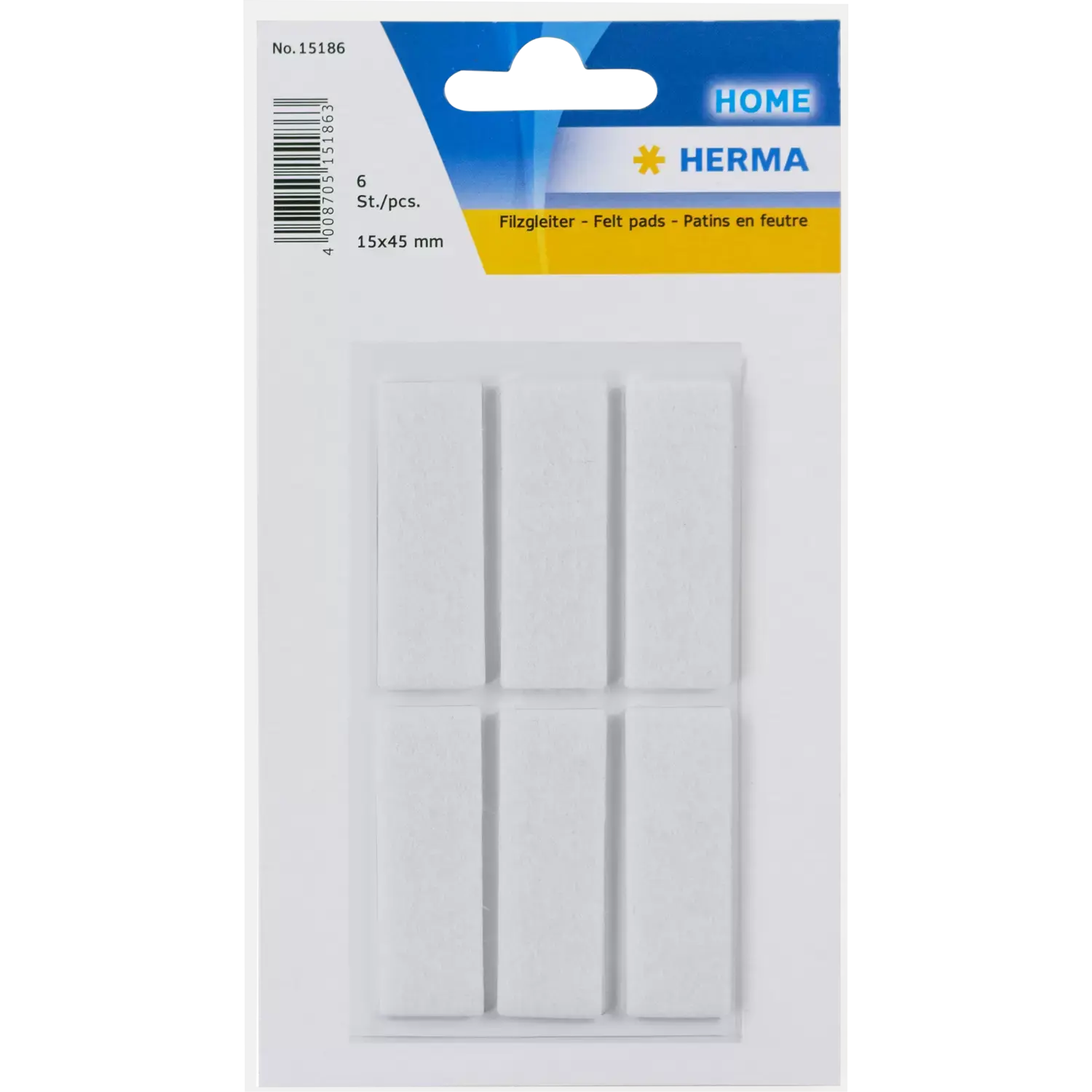 Viltglijder wit, 15 x 45 mm 6st.