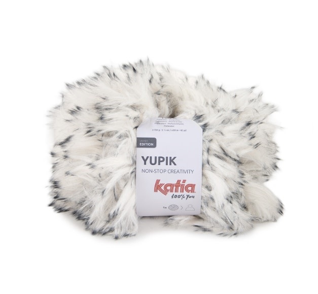 Katia Yupik is een fantasiegaren met faux-fur-effect en een mooie gemêleerde look dankzij de lange vezels met donkerdere uiteinden. Verkrijgbaar in diverse trendkleuren, ideaal voor warme, zachte en volumineuze kledingstukken. Met één bol maak je een muts en met drie bollen maak je een spectaculaire sjaal. Perfect voor snelle, stijlvolle en warme handmade winterprojecten.
